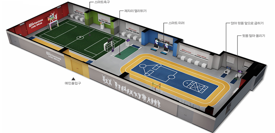 스마트 축구 / 제자리 멀리뛰기/ 스마트 미러 / 앉아 윗몸 앞으로 굽히기 / 윗몸 말아 올리기